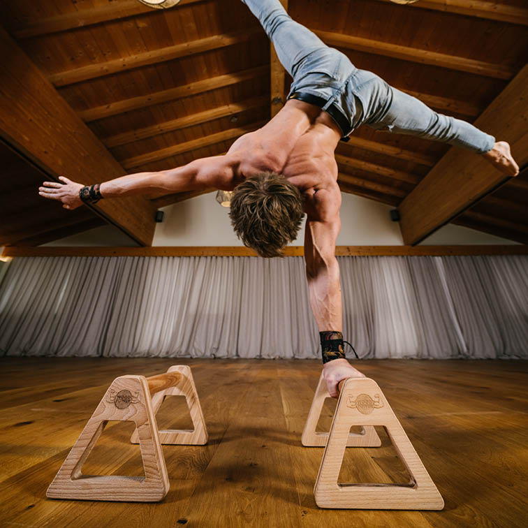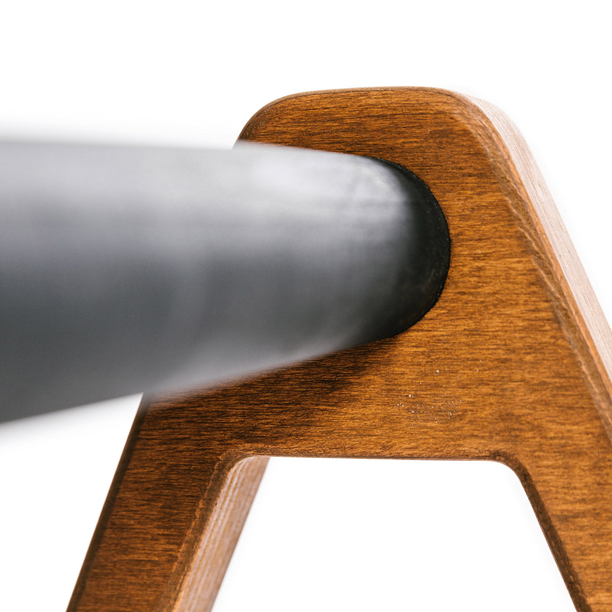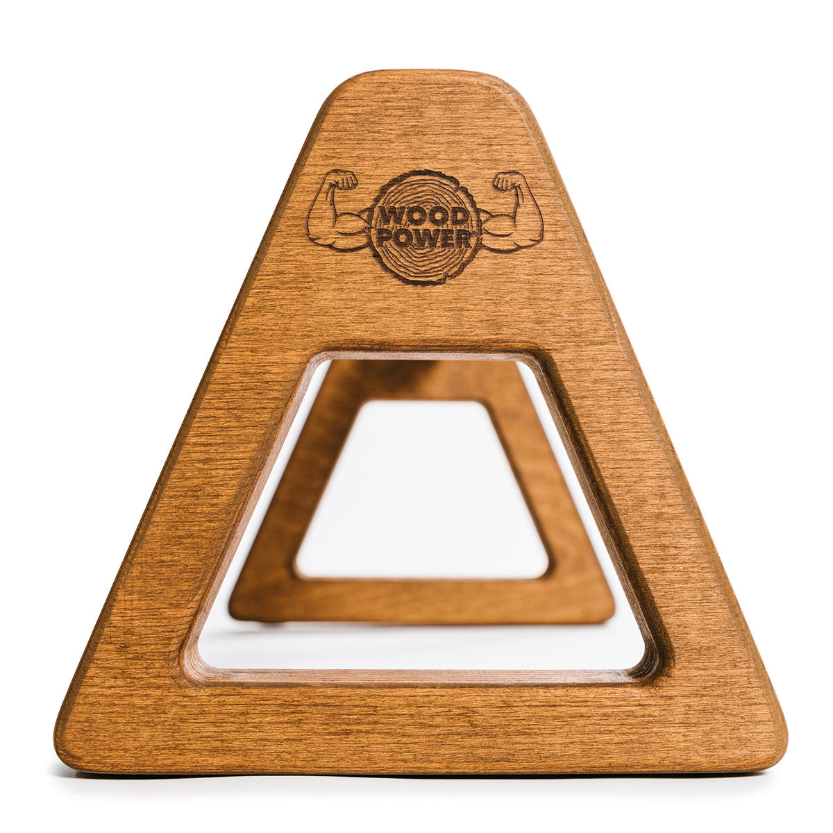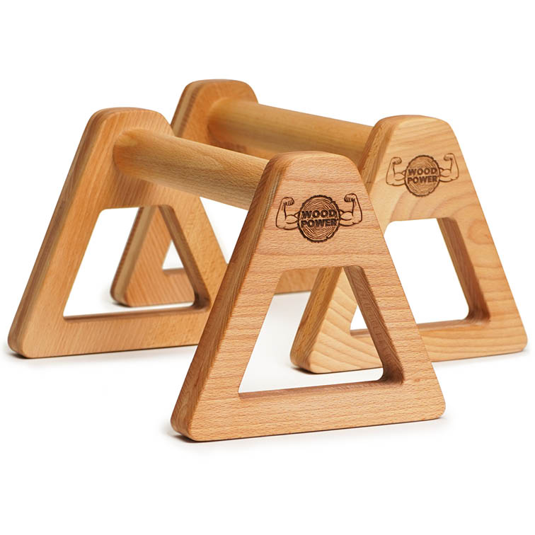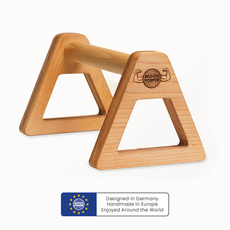 AGARRE NATURAL ANTIDESLIZANTE. Las barras de madera de haya absorben el sudor para garantizar un agarre máximo al tiempo que favorecen una posición cómoda y neutral de muñeca. Las bases triangulares están equipadas con almohadillas de silicona duraderas y hechas a medida, asegurando que sus PowerBars solo se muevan cuando usted lo desee.